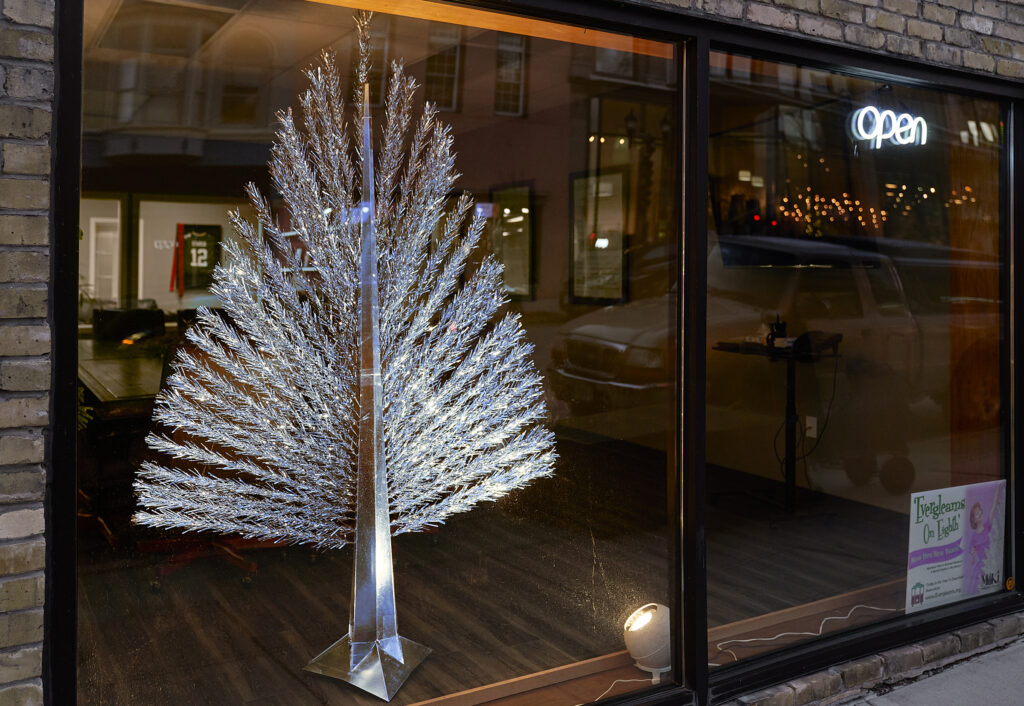 What does a person do with 70 Christmas trees? You put them on display at the Manitowoc Public Library and in the storefronts of more than three dozen downtown businesses. The annual “Evergleams on Eighth” festival features about 200 silver and multi-colored aluminum trees, borrowed from the prized collections of several Evergleam devotees. What started as an experiment in 2015 is now a widely anticipated event that draws window shoppers from as far away as Minneapolis and Chicago.