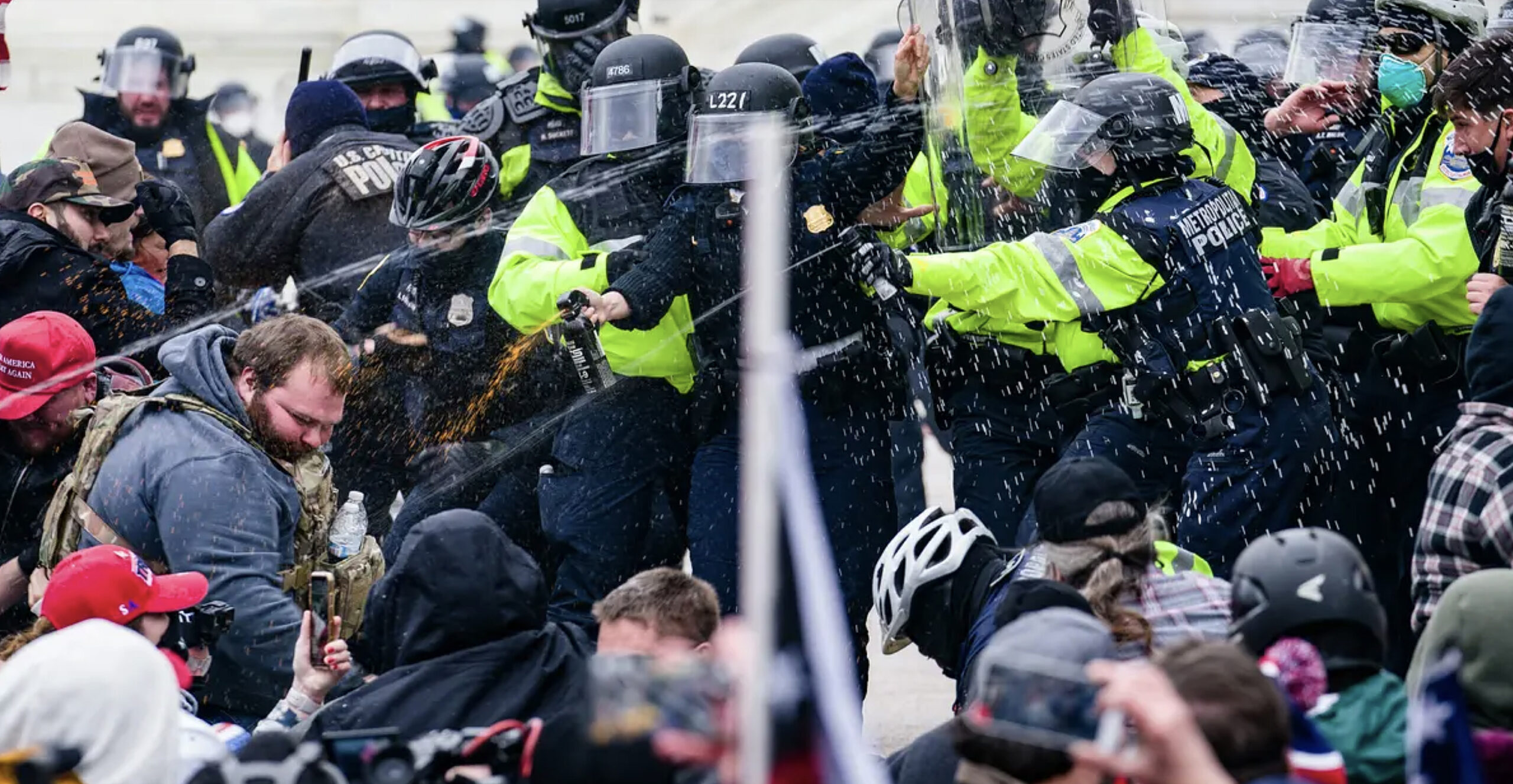 Pepper spray is used during a clash between protesters and police officers at the U.S. Capitol in Washington on Jan. 6, 2021. Leo Shi/The Epoch Times