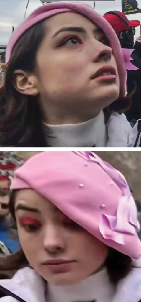 Bystanders in the huge crowds at the U.S. Capitol on Jan. 6 couldn’t help but notice the young woman with the stylish clothes, high heels, Dolce & Gabbana handbag, and a pink beret perched on her head. She became known on social media by the hashtag #PinkBeret.