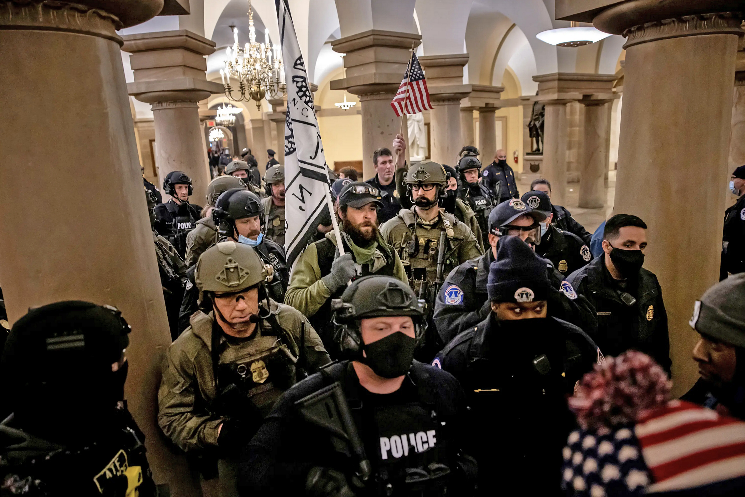 FBI and ATF law enforcement evacuate protesters from inside the U.S. Capitol in Washington, on Jan. 6, 2021. (Brent Stirton/Getty Images)