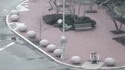 The UGV reached the DNC property at 1:49 p.m. and left the street to travel northwest on the sidewalk toward two park benches. It stopped at the benches and inched forward to examine the pipe bomb at 1:50:22 p.m., video footage shows.