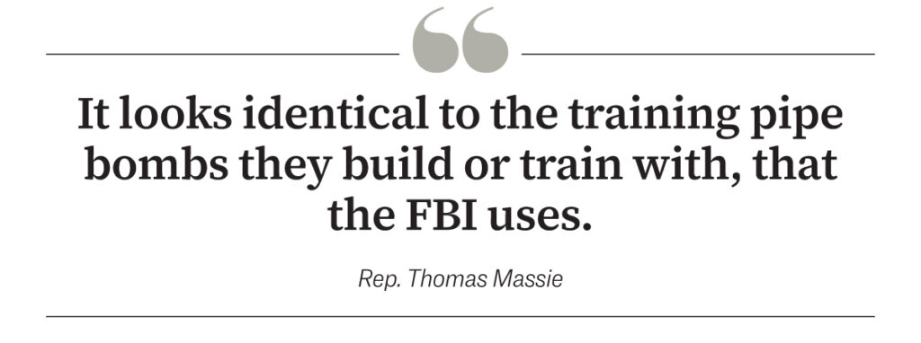 “It looks identical to the training pipe bombs they build or train with, that the FBI uses … right down to the 60-minute kitchen timer,” Massie said on Jan. 30.