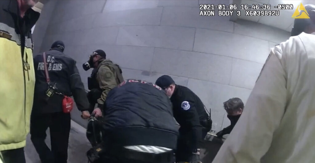 A dramatic new Metropolitan Police Department bodycam video shows how officers and medics from three police agencies worked for 15 minutes to try to revive a lifeless Rosanne Boyland after she was dragged feet-first through the Lower West Terrace tunnel on Jan. 6, 2021.