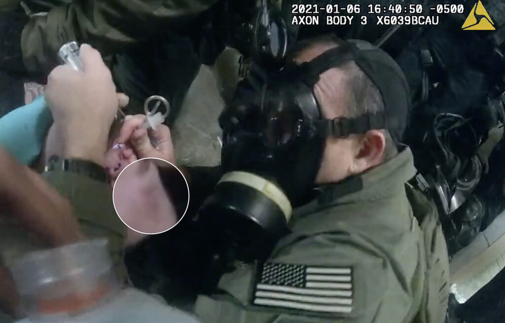One minute later, another Park Police officer inserted a breathing tube down Boyland’s throat and connected it to a resuscitation bag. The officer doing the manual respiration had to put his gas mask on because the air in the hallway was full of pepper spray.
